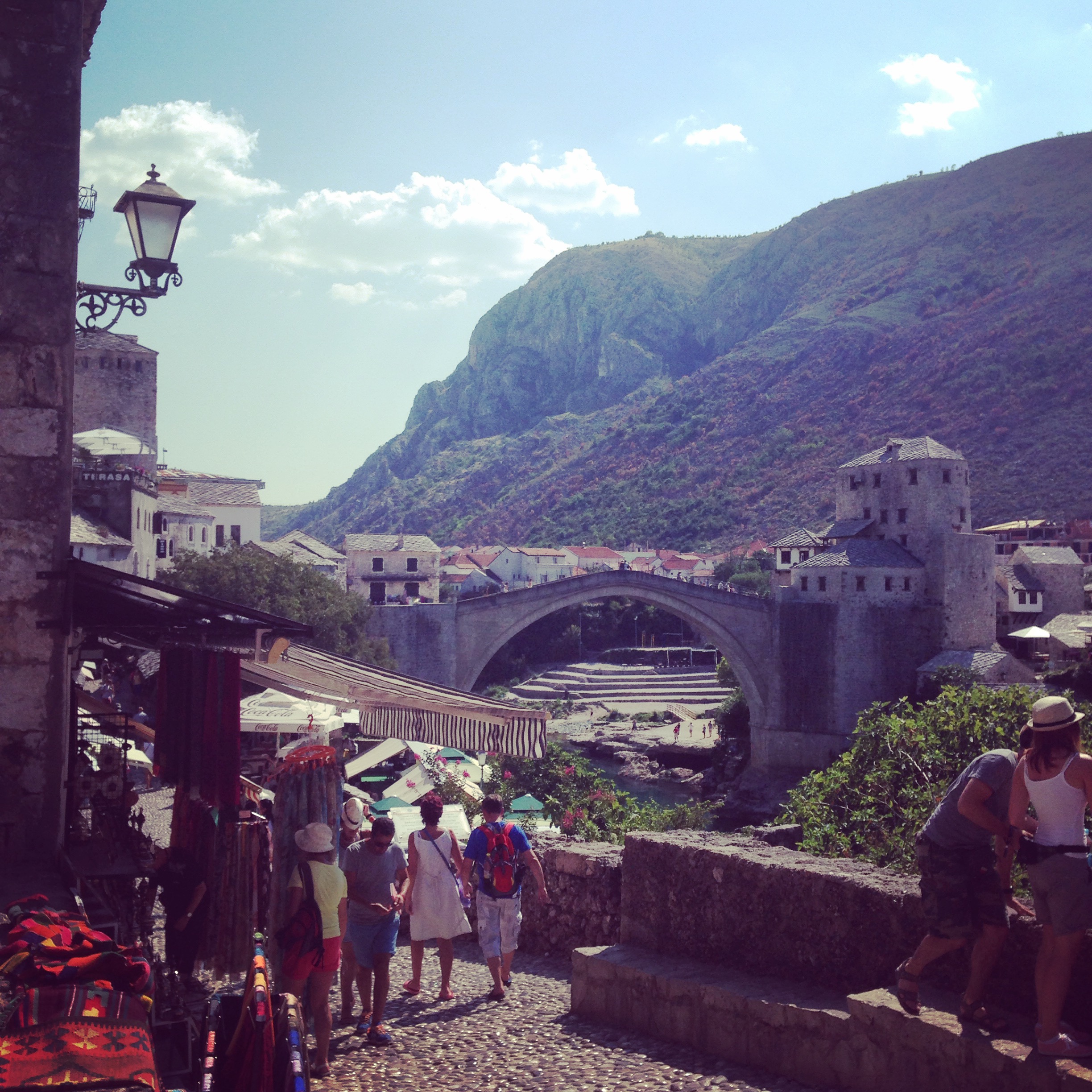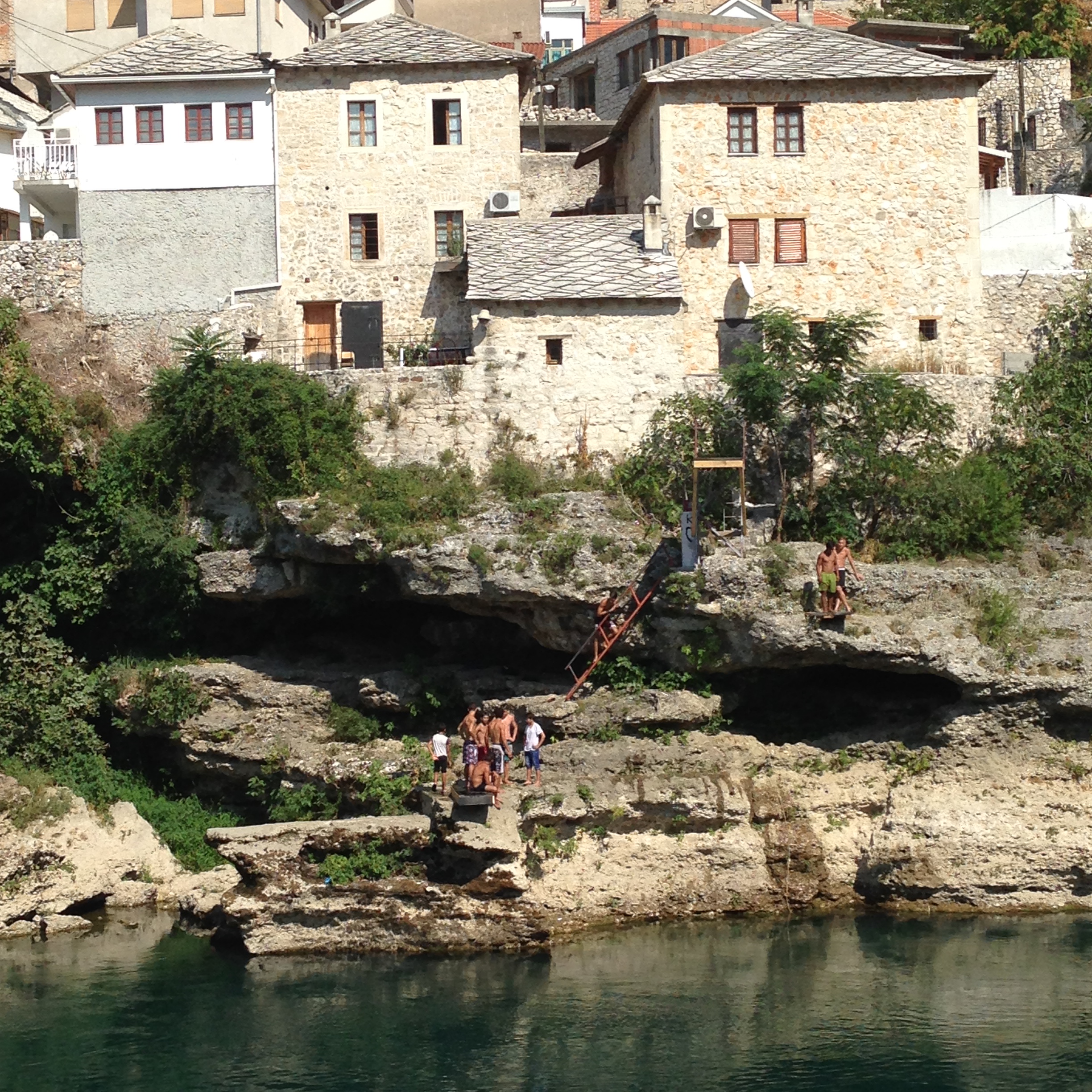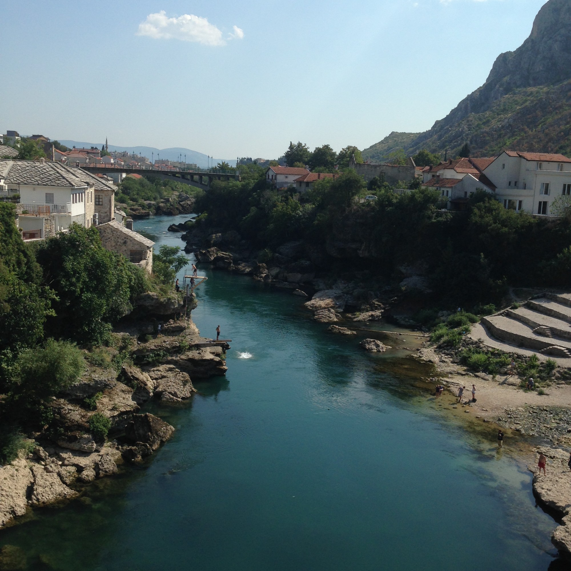 Yükseklik korkum yüzünden köprünün üstüne geldiğimde bacaklarım hafiften titremiyor değil. Köprüden aşağı kendini Neretva’nın derin ve soğuk sularına bırakan cesur gençlere de imrenmedim desem yalan olur. Bu gençlerin birkaç kare fotoğrafını çekip, kendimi karşı yakaya atıyorum hemen.