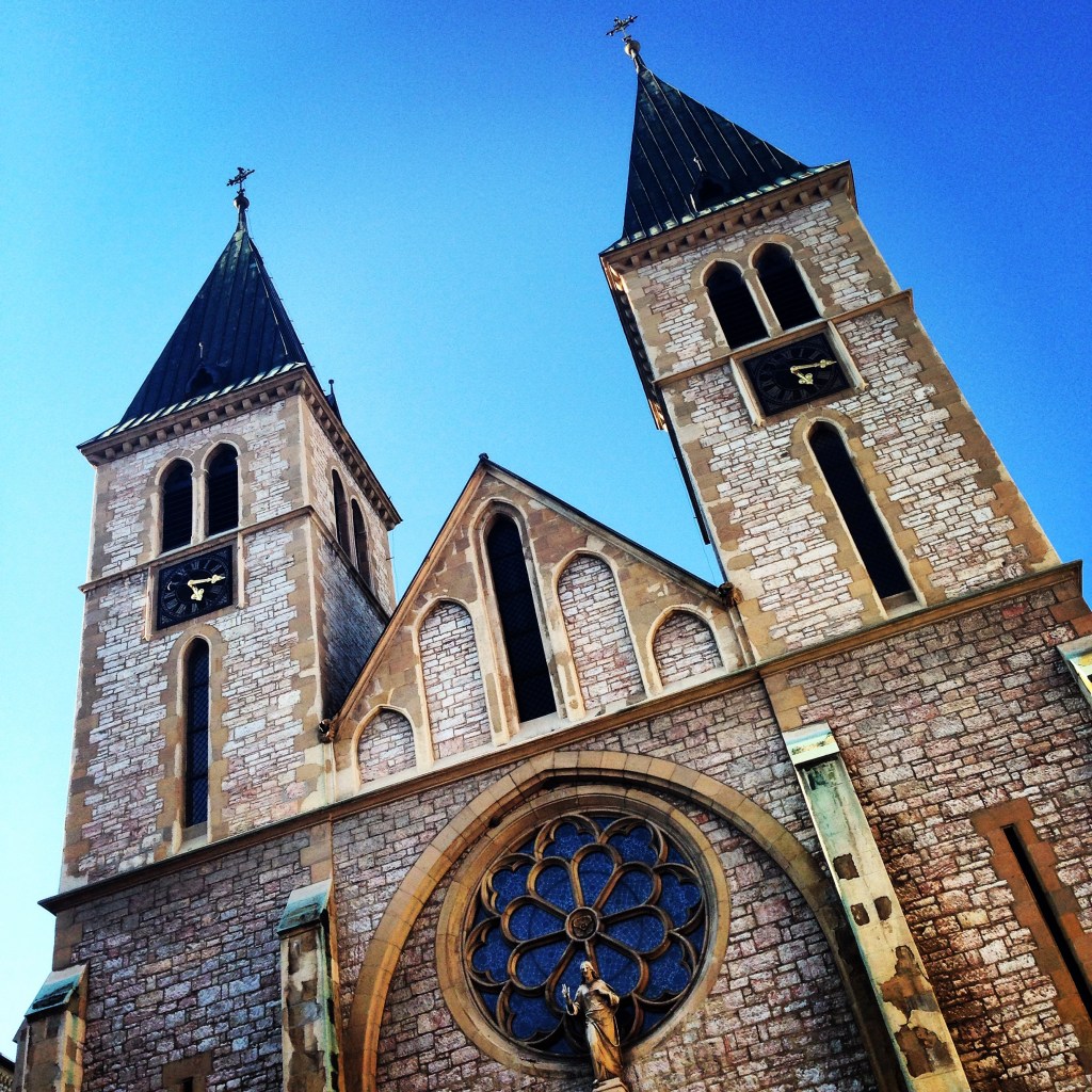 Katoliklerin ünlü İsa’nın Kalbi Katedrali şehrin görülmeye değer yapılarından biri. Gotik tarzı ile göze çarpıyor. Önündeki meydan ve etrafındaki kafeler hem buluşma noktası hem de dinlenip soluklanmak için ideal. Bu kafelerden birinde UNICEF Türkiye’nin eski temsilcisi sevgili Ayman Bey ile buluşup, anılarımızı tekrar canlandırıyoruz. Benim orada bulunduğum dönemde kendisi UNICEF Bosna Hersek Temsilciliği görevini yürütüyordu.